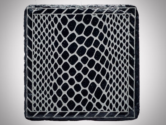 Elevate your space with our premium slate coasters, where raw, natural stone meets precision engraving. Each set includes four 4" round or square slate coasters, housed in a sleek wire holder for easy storage and display. We pre-treat the slate with a clear coat, enhancing its deep, rich tones while preserving its natural moisture retention properties. This pre-treatment allows our MOPA fiber laser engraving to "pop" with crisp, high-contrast detail, ensuring a permanent, fade-resistant design. Whether for your home, office, or as a unique gift, these handcrafted slate coasters offer rugged durability with a refined aesthetic.