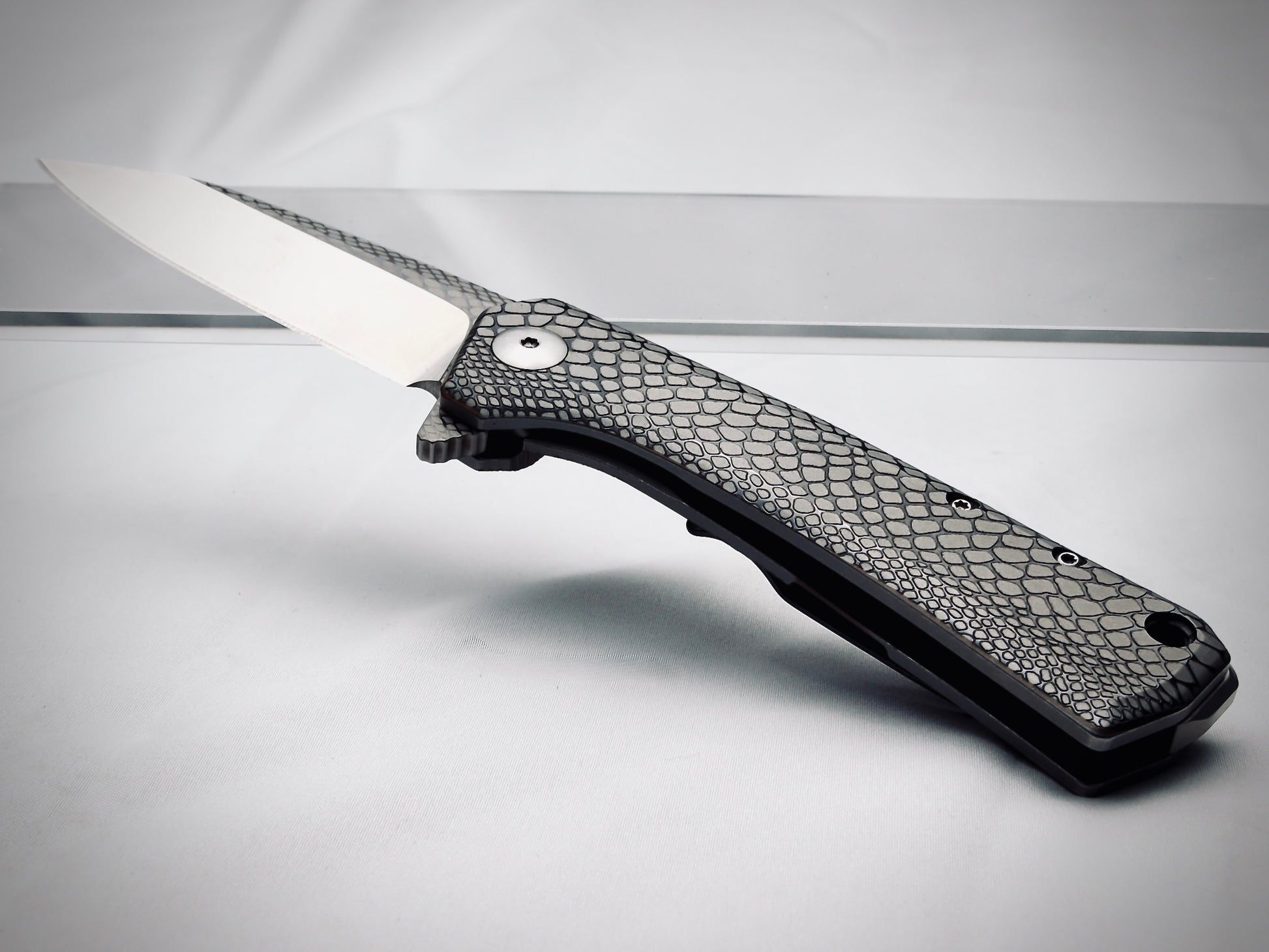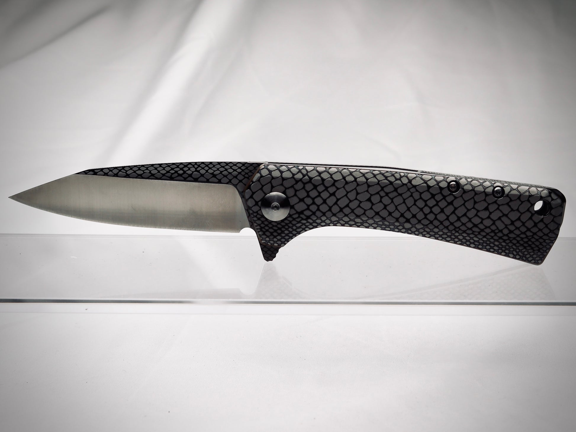 Introducing the Dinosaur Diamond Industries Model 1982 Venom Customized Folding Knife—a knife that strikes with precision and undeniable presence for enthusiasts, collectors, and everyday carry (EDC) users. Crafted with 420 stainless steel handles and a D2 steel blade, this customized knife is as durable as it is sleek, ideal for utility tasks like camping, hiking, and precision cutting.